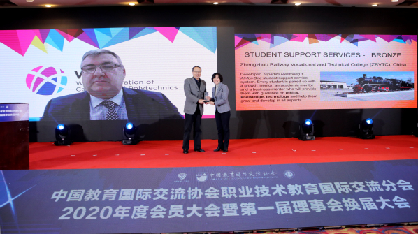 On November 27, the award ceremony for the Excellence Prize of the 2020 World Federation of Colleges and Polytechnics (WFCP) was held in the sub-venue, namely Nanjing, China. In the ceremony, the 2020 Award List of Excellence Prize was announced. Our college won the bronze award of “Student Support Service” for the Excellence Prize of the 2020 World Federation of Colleges and Polytechnics. It is the first time for the vocational education industry in Henan to win such a prize, filling the gap in the field and laying a firm foundation for further promoting the high-quality development of Henan vocational education. Dong Lisheng, the vice president of our college was present in the award ceremony and received the award on behalf of our college . The vice chairman of World Federation of Colleges and Polytechnics (WFCP) - Shen Xuesong, the deputy secretary general of the China Education Association for International Exchange presented the award to our college.