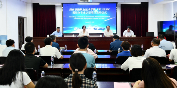 After that, Dong Lisheng and Jiao Mansheng, the president of NARIC jointly entered into the Contract of International Professional Standards Evaluation and Recognition Program of Zhengzhou Railway Vocational & Technical College and unveiled the nameplate for the experimental college of the “International Professional Standards Evaluation and Recognition Program in the Higher Vocational Education Field”. And, Ni Ju and Li Huajie jointly unveiled the nameplate for the “Member Unit of the National Recognition Information Center for the United Kingdom”.