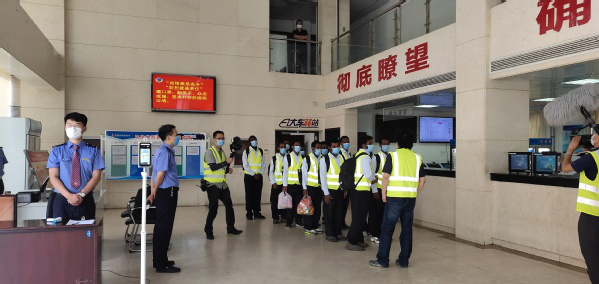 The train arrived at the Shangqiu station, and the relevant leaders of the station and the apartment arranged the students to get off the locomotive and exit the station