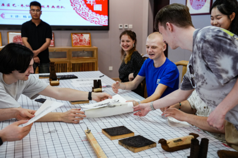 Russian Students from the Silk Road Academy Experience the Art of Woodblock New Year Pictures, Immersing in the Charm of Intangible Cultural Heritage