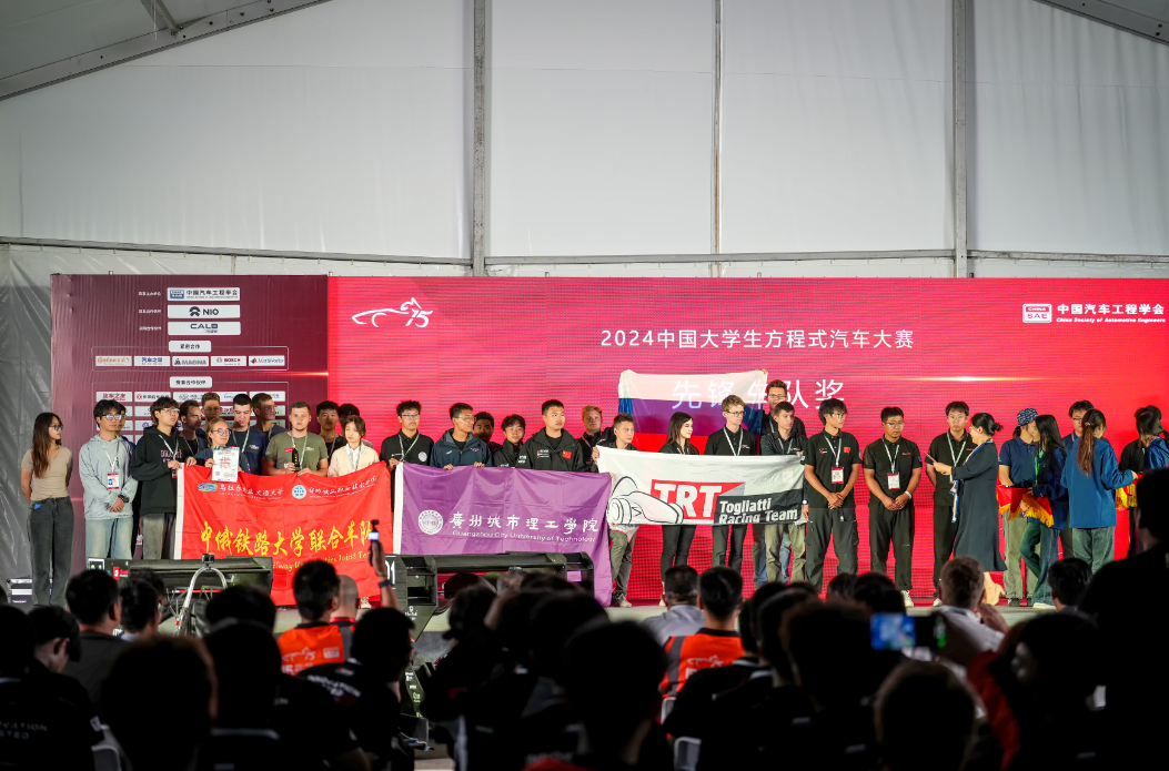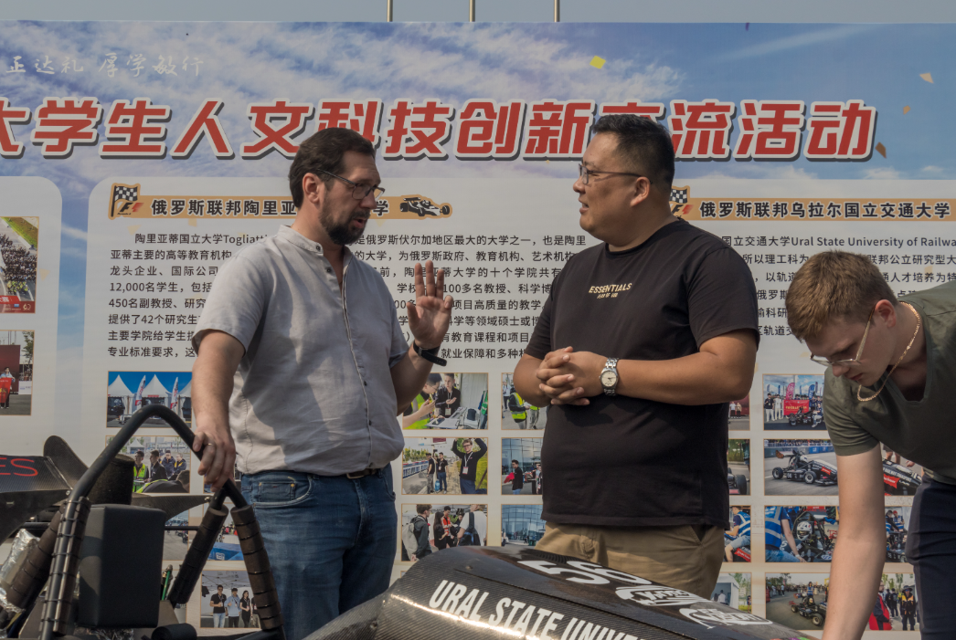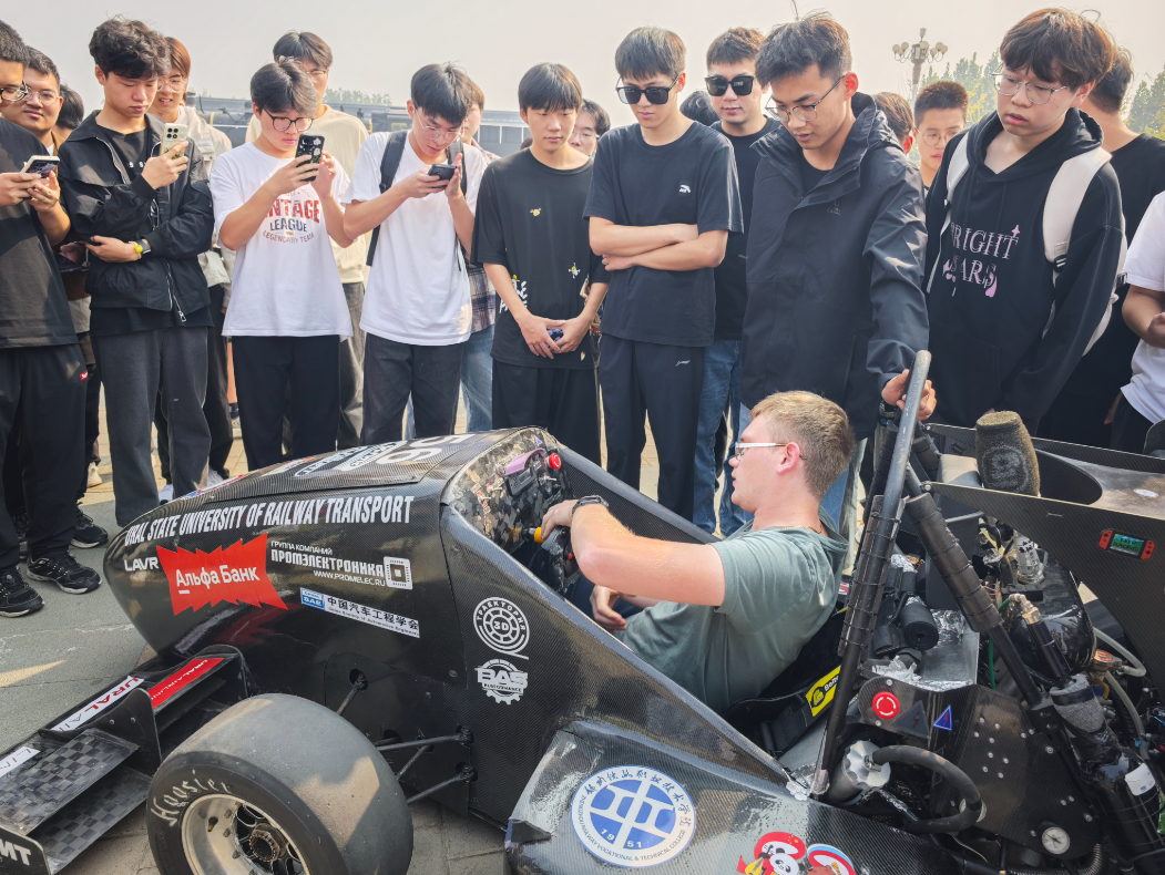 During the autumn camp, the college's joint teams with the Ural State University of Railway Transport and Togliatti State University participated in the 2024 Formula Student China competition. A total of 23 Chinese and Russian students competed in static and dynamic events, achieving outstanding results. After the competition, the Russian team conducted a display event featuring formula racing cars on the college's Tielong Square. Chinese and Russian students shared their experiences in competitions using Chinese, Russian, and English while discussing topics like vehicle design philosophy and driving techniques.