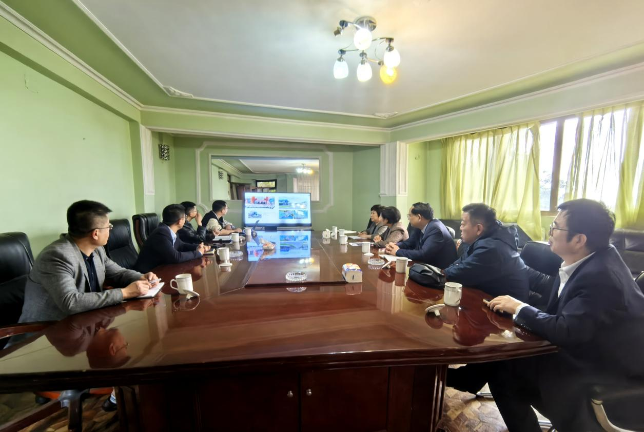 In the afternoon, Li Fusheng and his delegation met with Ding Jianwei, General Manager of CCECC Ethiopia, Li Minggang, Deputy General Manager, Li Tao, Director of Integrated Management (Party Mass Human Resources), Yang Anwei, Executive General Manager of the Addis Ababa-Djibouti Railway Operation and Maintenance Project, and Song Zhen Gang, Director of Capacity Building. During the meeting, Ding Jianwei introduced the projects undertaken by CCECC Ethiopia, focusing on the Addis Ababa-Djibouti Railway operation and maintenance project. He stated that while the company pursues the integration of scientific and technological innovation, it will complete exquisite projects that are small but beautiful, beneficial, and beneficial to the people. Li Fusheng introduced the basic situation of the College and the achievements of its international education. He stated that the College's international education should follow enterprises and provide them with local employee training and various technical services. The meeting specifically discussed subsequent local talent cultivation, skill training, and Chinese Workshop construction, reaching a consensus.