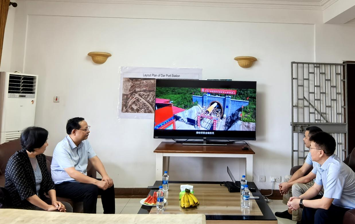On August 11th, Li Fusheng and his delegation visited the CREGC Tanzania Branch and held talks with General Manager Hu Bin, Deputy General Manager Fu Jianjun, and Deputy General Manager and Deputy Project Manager He Jiaxiu. Li Fusheng introduced the College's educational history, development achievements, international cooperation practices of bringing in and going out, and the effectiveness of Sino-foreign cultural exchanges. He expressed the desire to deepen cooperation in talent cultivation, development of international teaching resources, scientific research, and other areas to contribute to the high-quality construction of the Belt and Road initiative. Hu Bin warmly welcomed Li Fusheng and his delegation and provided a detailed overview of the international projects undertaken by the CREGC Tanzania Branch, particularly the China-Laos Railway and the Tanzanian cooperation project. Subsequently, both parties engaged in in-depth discussions on scientific cooperation, standard setting, and talent cultivation related to the three-rail parallel operation at the Port of Dar es Salaam in the United Republic of Tanzania, reaching a consensus on cooperation.