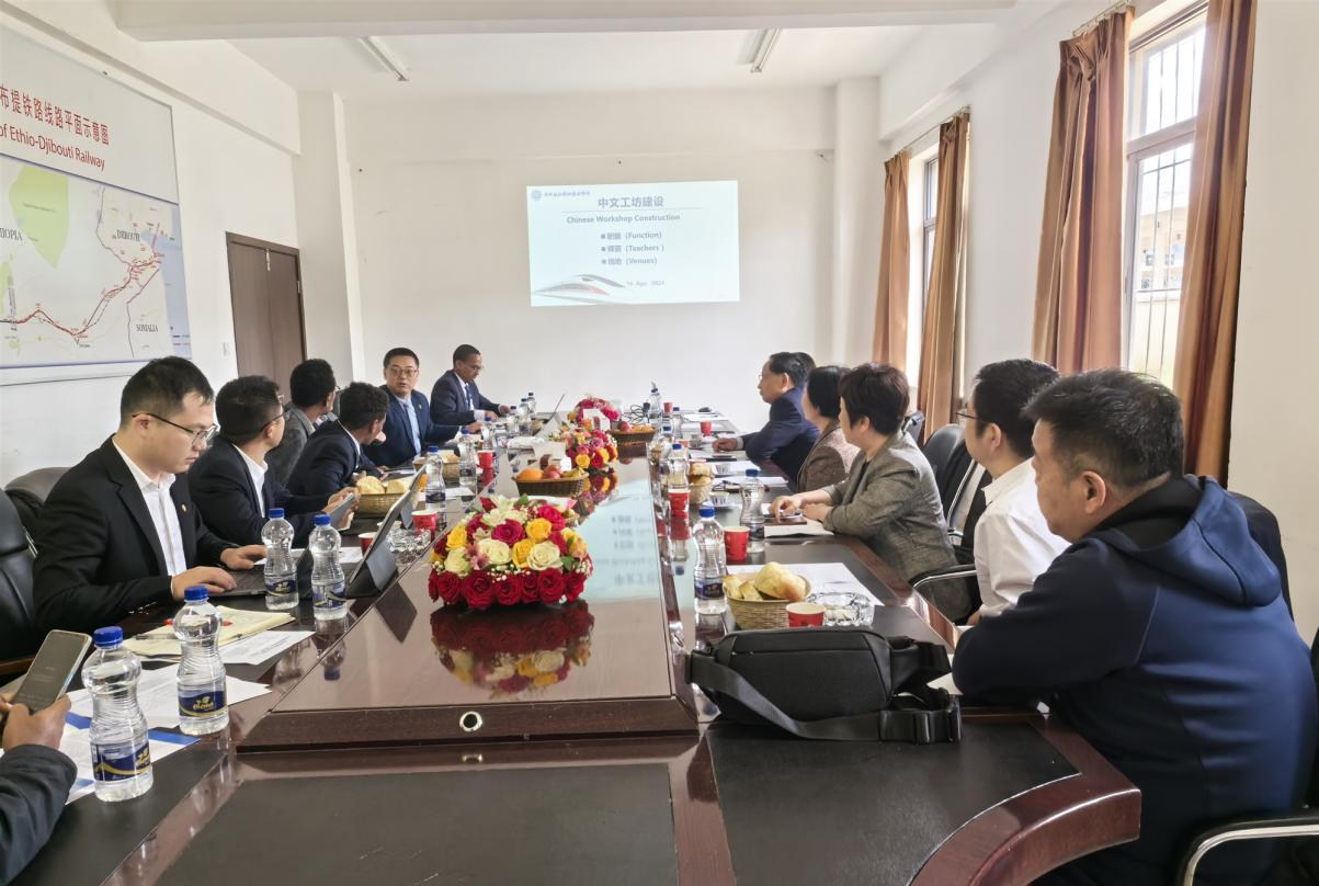 On August 16th, Li Fusheng and his delegation visited the Ethiopian-Djibouti Standard Gauge Railway (EDR) and the China Civil Engineering Construction Corporation (CCECC) Ethiopia, where both companies introduced their development history and expressed full affirmation and recognition of the two cohorts of train drivers trained by the College for the Addis Ababa-Djibouti Railway. To better conduct talent training in the future, both parties had in-depth discussions on Chinese + Vocational Skills, Chinese Workshop Construction, and Vocational Capacity Building.