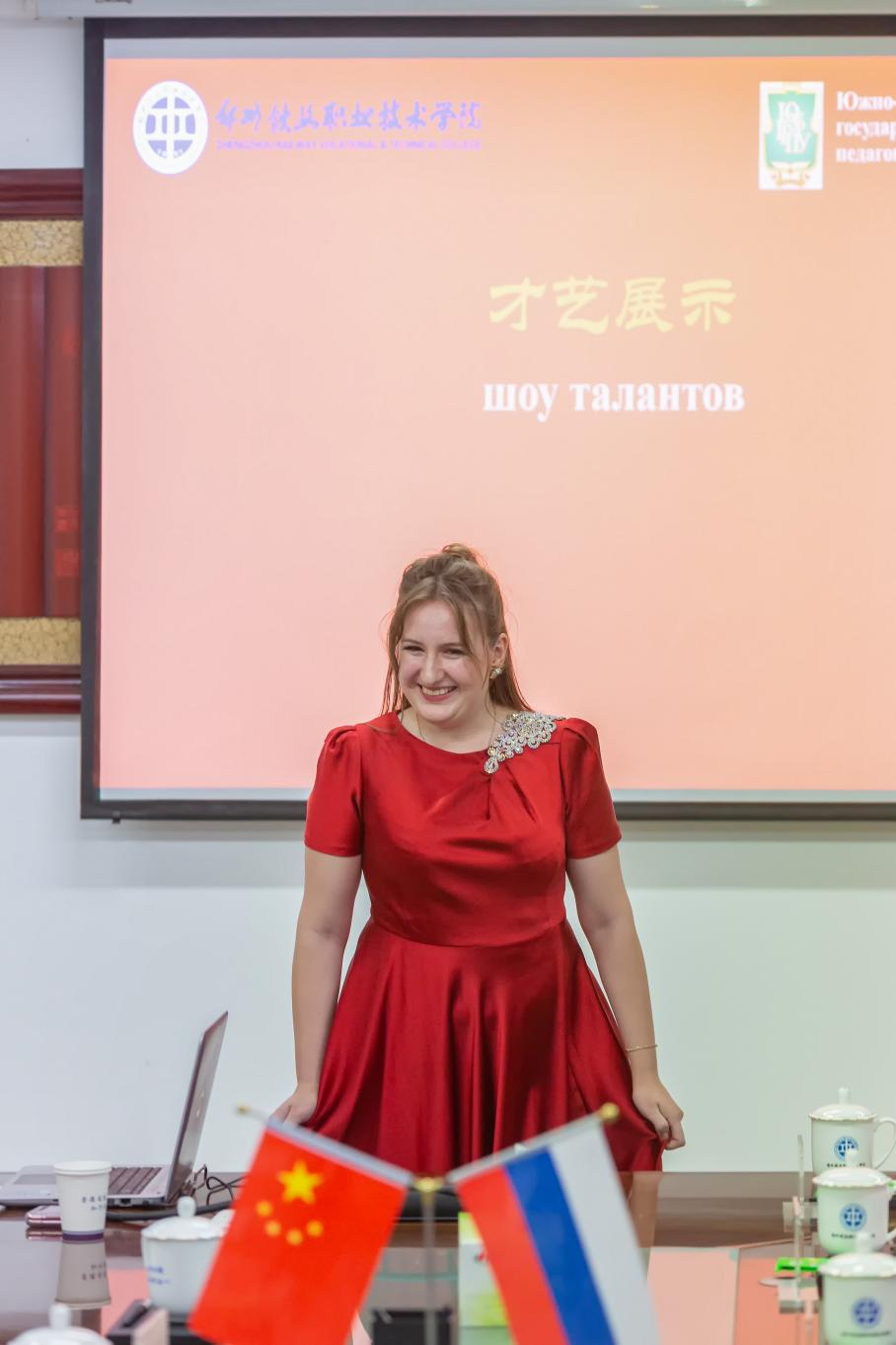 Irina Yuryevna, during her speech, introduced the university's rich history, distinctive majors, and international education initiatives. She extended a sincere invitation to the college's leaders to attend their 90th-anniversary celebration as honored guests and expressed a desire to further strengthen cultural and educational exchanges. Following her address, a student representative performed the classic Russian song The Evening of the Moscow Outskirts.