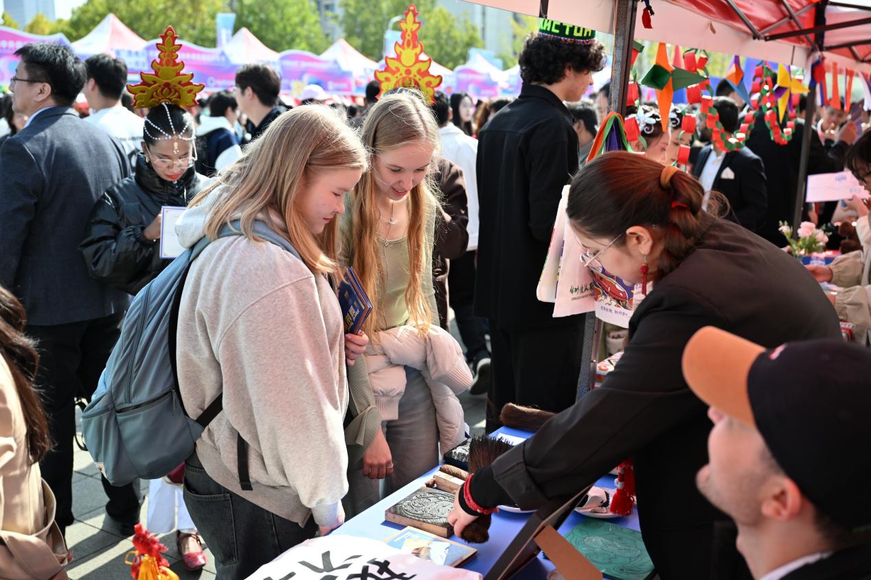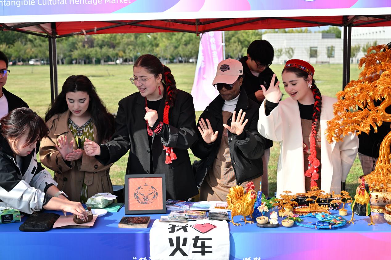 In the intangible cultural heritage exhibition area, our international students became "ambassadors of intangible cultural heritage," presenting aluminum weaving and Zhuxianzhen woodblock New Year prints for teachers and students from various countries to experience. Visitors marveled at the exquisite shapes of the aluminum crafts, repeatedly asking, "How can such shapes be made?" Some foreign teachers and students, holding their own printed New Year pictures, excitedly asked our students about the stories behind the prints. This form of exchange, using intangible cultural heritage as a medium, enhanced the understanding of Chinese culture among teachers and students from different countries and quickly brought everyone closer together. Our university was awarded the "Best Cultural Presentation Award" by the festival organizers.