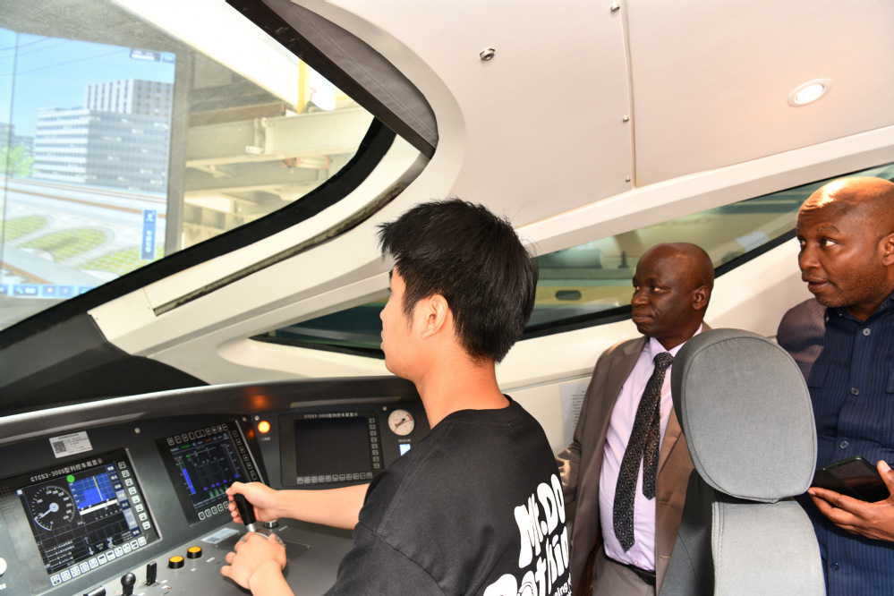 After the meeting, Charles Mahela and his delegation visited the comprehensive rail transit training base and the innovation building training rooms at ZZRVTC.