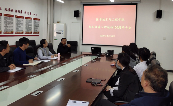 4月30日上午,纪念五四运动100周年大会在北京人民大会堂举行,习近平总书记出席大会并发表重要讲话。医学技术与工程学院党总支组织广大师生观看直播并热议习近平总书记讲话精神。