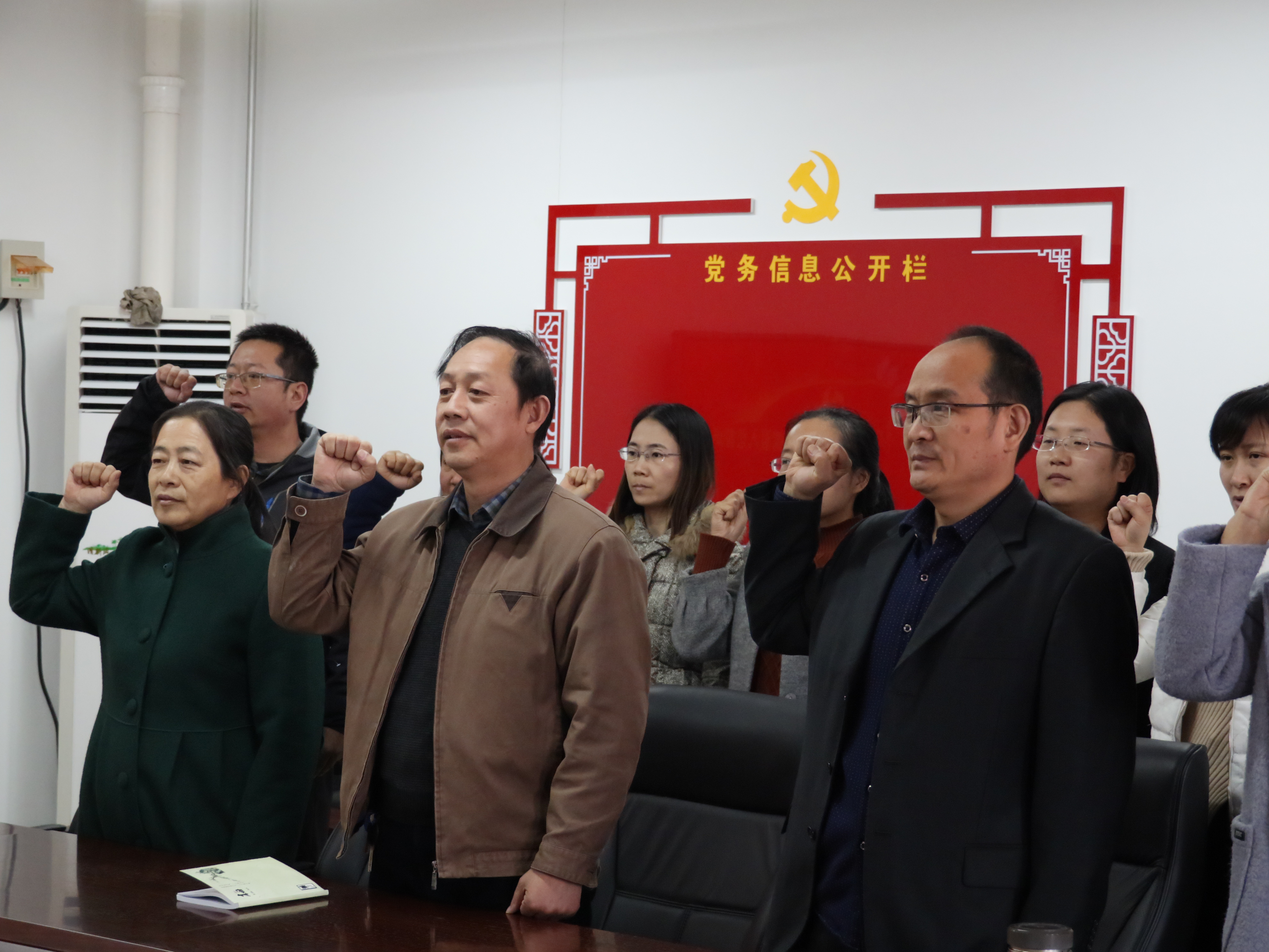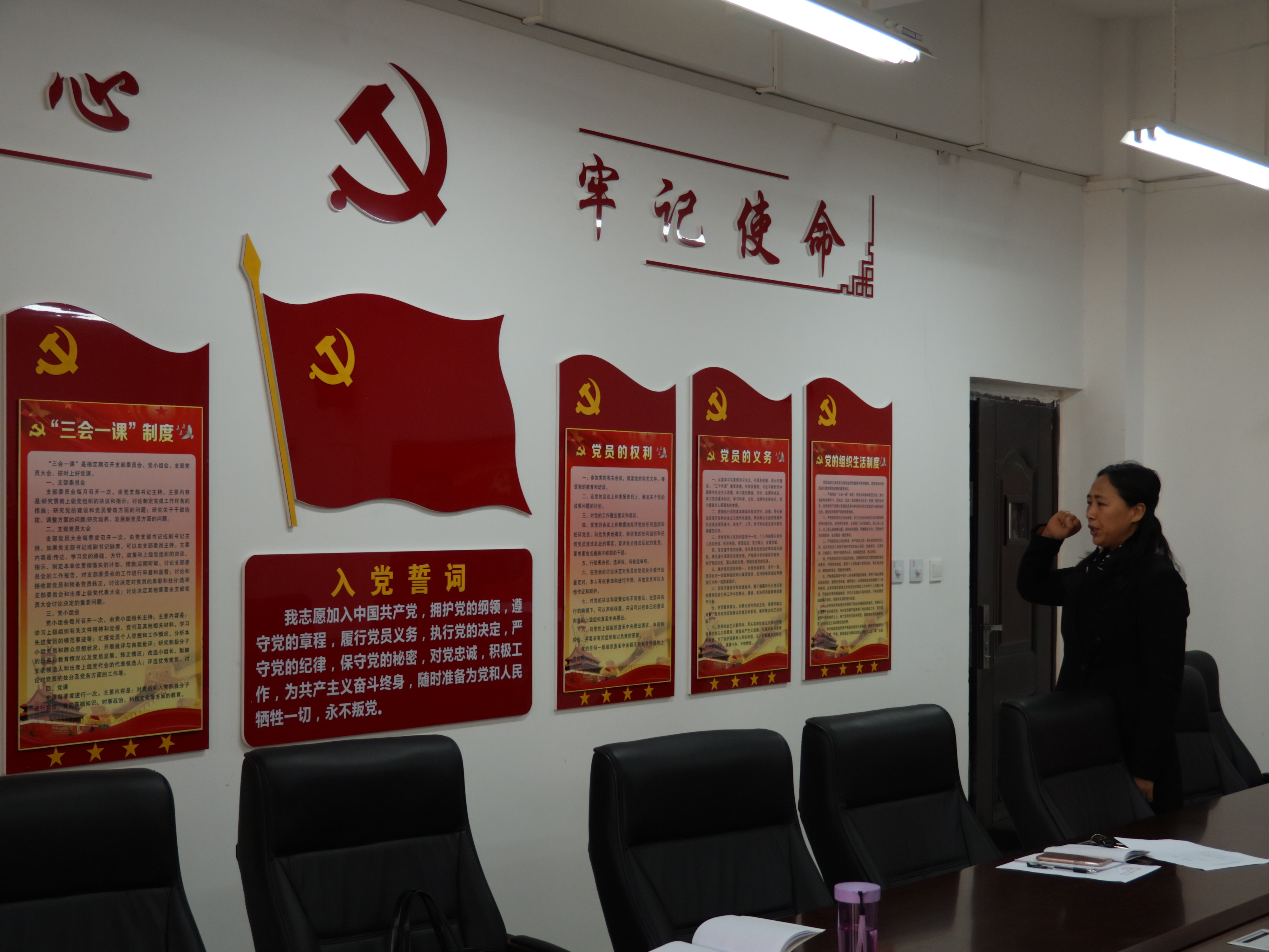 为深入学习贯彻党的十九大精神,进一步推进“两学一做”学习教育常态化制度化,2017年11月28日下午,药学系党总支教学党支部在系党员活动室,以“不忘初心、牢记使命”为主题,组织党员面向党旗集体宣誓,进行了重温入党誓词活动,校党委副书记付莉,药学系党总支书记陆艳琦,系主任张效斌都以一名普通党员身份参加了此次组织生活。此次活动由教学支部书记王运登同志主持。