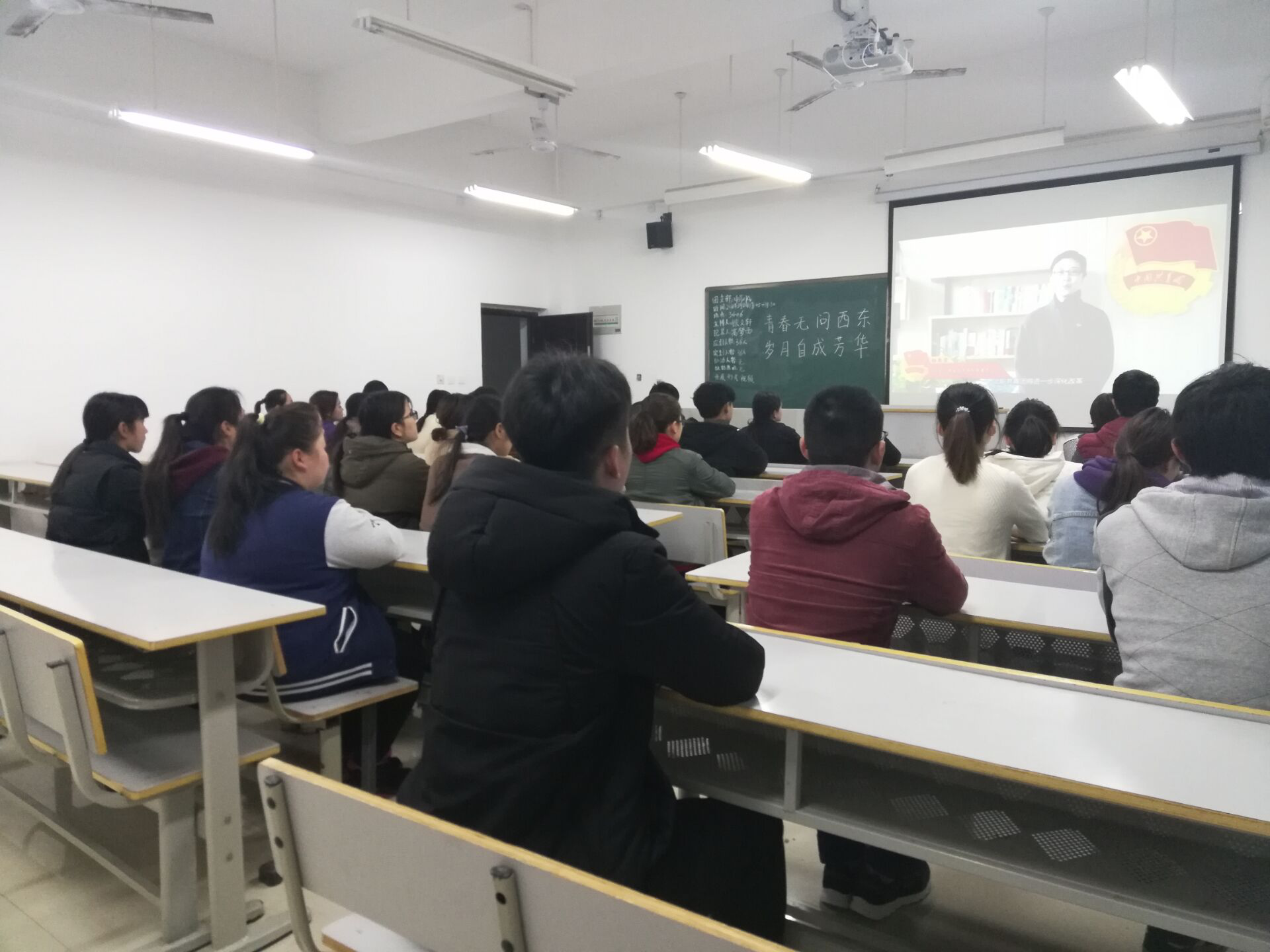 药学系2016、2017级全体同学分别于3月15日15:00和3月18日18:45在各班固定教室举办了以“青春无问西东,岁月自成芳华”为主题的团课。