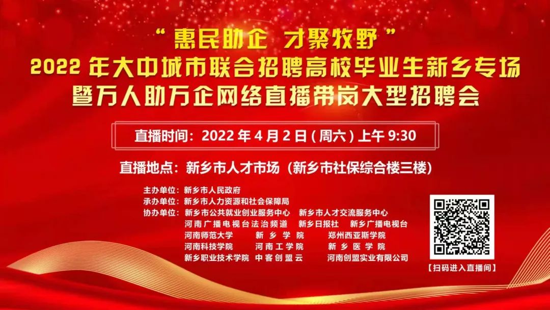 2022年大中城市联合招聘高校毕业生新乡专场暨万人助万企网络直播带岗大型招聘会